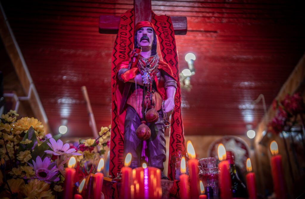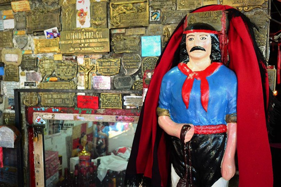 “Con la sangre de un inocente se curará a otro inocente”, le dijo el gaucho a su homicida antes de ser decapitado. El coronel, luego de entregar a las autoridades la cabeza de Antonio Gil, se fue a su casa y al llegar encontró moribundo a su hijo. En la desesperación recordó las palabras del gaucho y cabalgó a toda velocidad hasta la zona donde habían enterrado el cuerpo y puesto una cruz de ñandubay. Juntó los restos de la tierra todavía húmeda por la sangre, untó a su hijo con ella y ocurrió el milagro. En los último 30 años la devoción al Gauchito Gil se expandió a borbotones y se convirtió en el santo pagano más querido de la Argentina, su santuario principal está en la ruta N°123 de la pequeña localidad de Mercedes, Corrientes. En el caso del Gauchito, su presencia se fue extendiendo porque los camioneros, que tenían paso obligado por Mercedes, se fueron haciendo devotos y comenzaron a construirle altares en las rutas argentinas, como en su momento lo hicieron para la Difunta Correa.