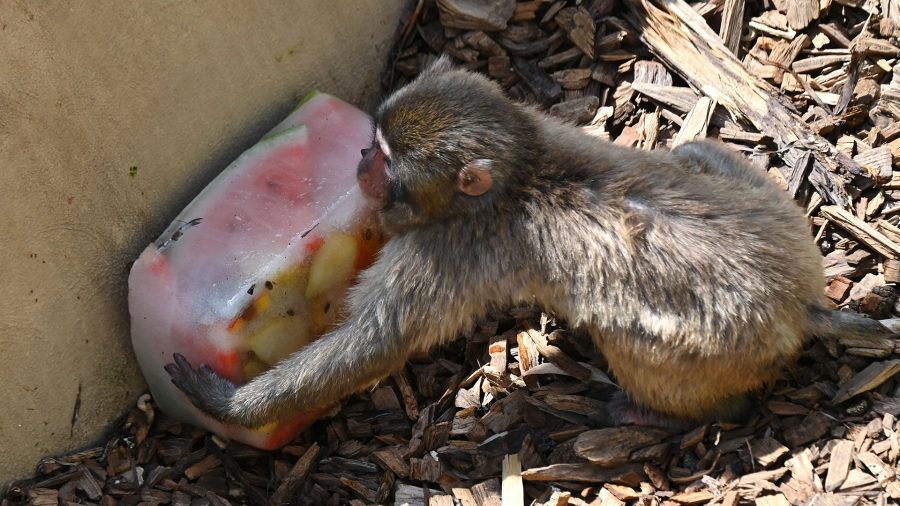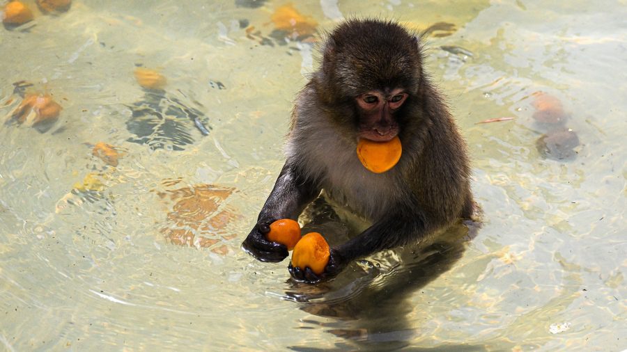 Según consignó la agencia AFP, un grupo de macacos japoneses se abalanzó sobre los helados de ciruelas, plátanos, melones y de cereales que los empleados lanzaron directamente a su piscina.