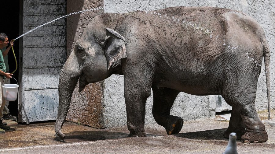 Además de la comida, Sofía, una elefanta asiática, recibió duchas frías para soportar los 39° grados del martes en Roma.