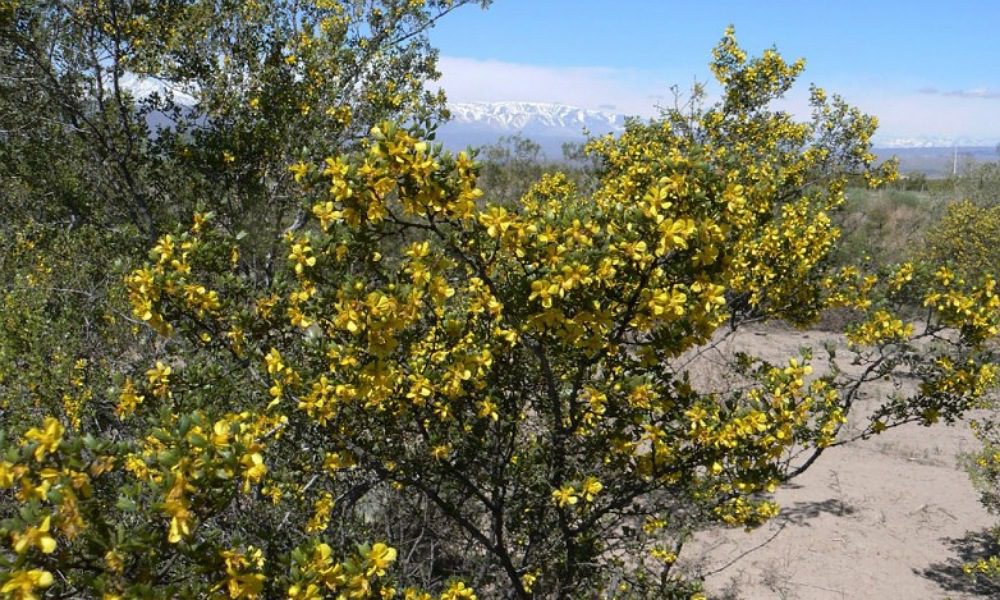 En primavera, el retamo ofrece un espectáculo maravilloso con sus flores amarillas vibrantes, en racimos que brotan de las ramas fértiles y que contrastan con los ocres opacos del desierto sanjuanino.
