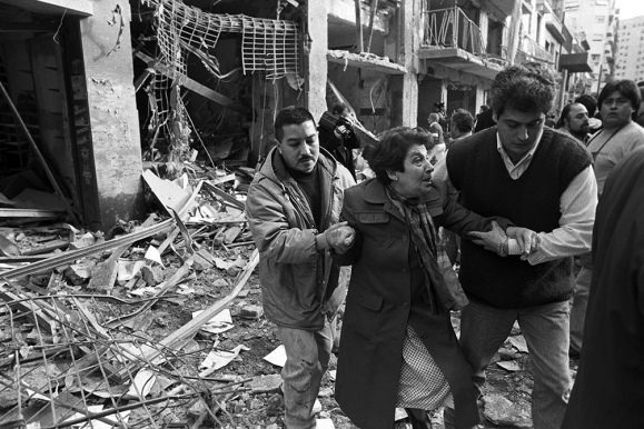 Daniel recuerda que el piso se movió por el estallido, y que con Salo intentaron sostenerse luego de trastabillar. No veían nada, solo se escuchaban gritos. El impacto llevó a Laura dos metros más adentro del negocio. Para César, el tiempo se detuvo cuando la onda expansiva lo «voló» hacia adentro de un local y comenzó a ver vidrios caer. La gente estaba ensangrentada cubierta por un espeso polvillo blanco.