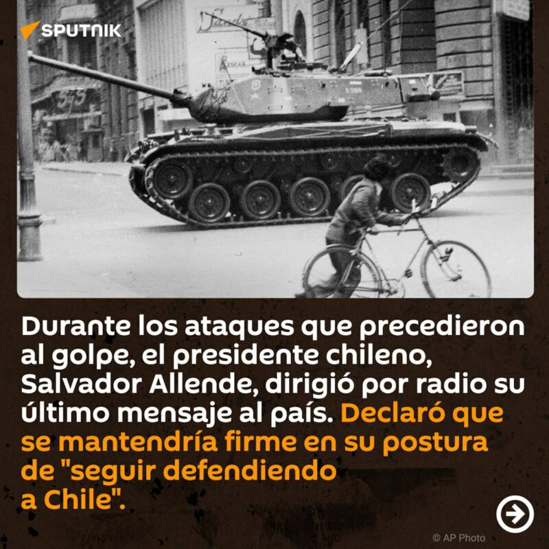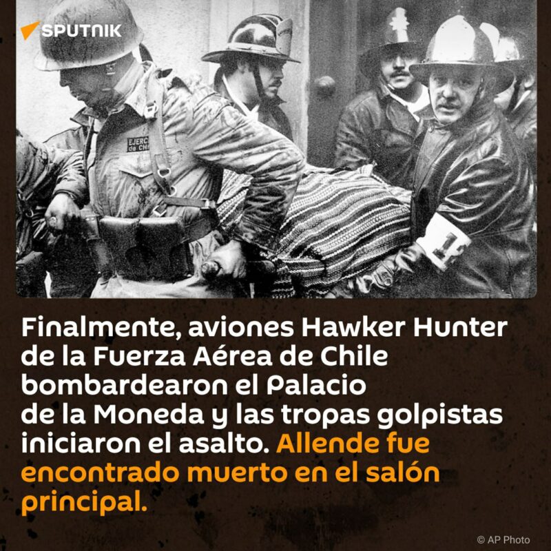 Ese mismo día, después de que el Palacio de La Moneda fuese bombardeado por aviones y tanques, Salvador Allende se suicidó. Tras el fin de su gobierno, el general Augusto Pinochet encabezó una dictadura militar que se extendió por casi 17 años.