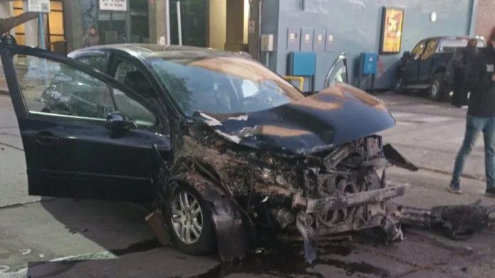 Un conductor que habría pasado en rojo provocó un violento choque en 9 de Julio y General Acha a la hora pico. La camioneta involucrada terminó sobre la vereda de una estación de servicio, mientras que el otro vehículo quedó destruido.