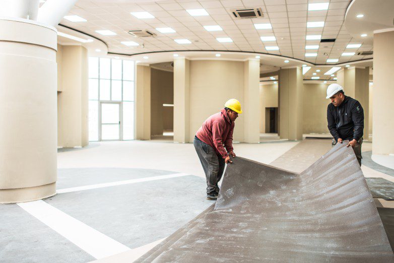 Las tareas de colocación de los pisos están en plena ejecución. Se trata de pisos de vinilo en tono mate, que cubrirán una superficie total de 3,600 metros cuadrados. En algunos sectores del edificio, ya se completó la colocación de los vinilos y esos espacios transmiten una evidente sensación de amplitud e iluminación.