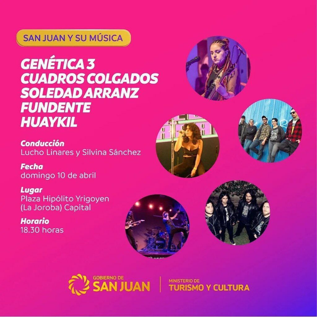 Luego el programa se traslada a Capital. El domingo 10 de abril, Genética 3, Cuadros Colgados, Soledad Arranz, Fundente y Huaykil tocarán en la Plaza Hipólito Yrigoyen (Plaza La Joroba). El recital comenzará a las 18.30 y será conducido por Lucho Linares y Silvina Sánchez.