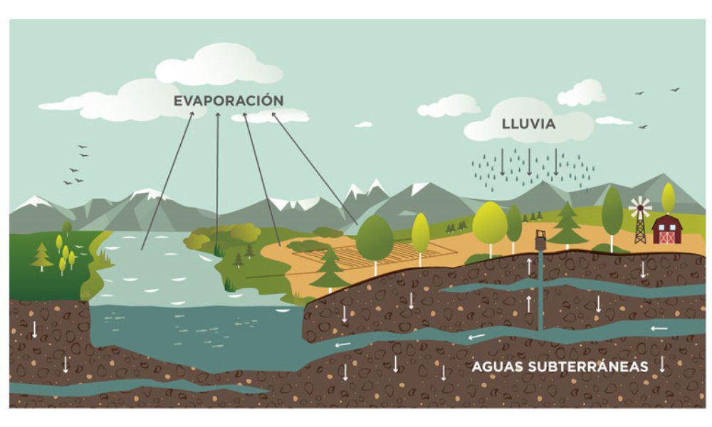 Los acuíferos están constituidos mayormente por masas de rocas permeables que permiten la circulación y la acumulación del agua subterránea en sus poros o grietas.