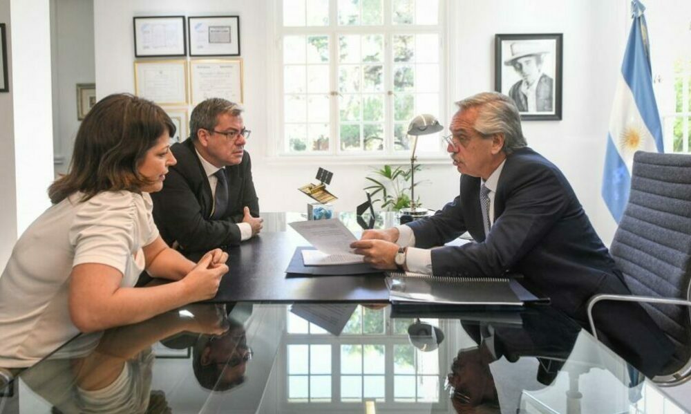 Alberto Fernández le entregó este miércoles al titular del bloque de diputados del Frente de Todos (FdT), Germán Martínez, y a la presidenta de la Comisión de Juicio Político de esa cámara, Carolina Gaillard, el pedido de juicio político a los miembros de la Corte Suprema.