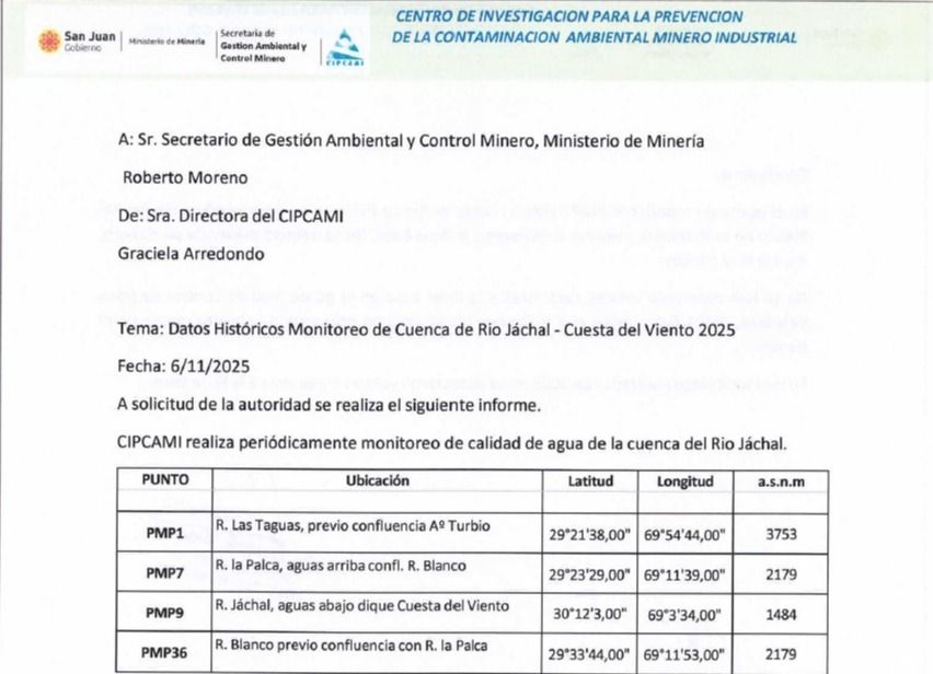 Consultada por Diario Huarpe, la coordinadora de prensa de la Secretaría de Ambiente, Victoria Mattei, negó que ese comunicado haya sido emitido por el organismo. Incluso expresó sorpresa por la difusión del PDF con los resultados del Cipcami.