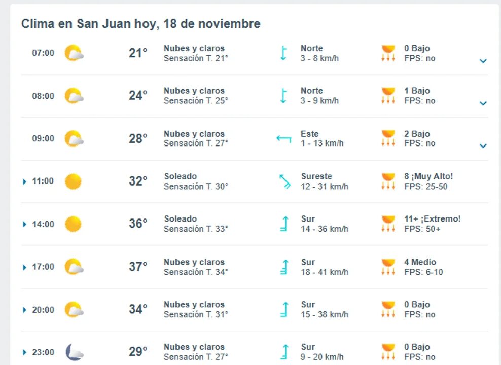 Este martes 18 de noviembre será el día más caluroso de la semana. Esto se debe a que la máxima llegará a los 38 grados. A la vez, indicaron que la mínima será de 20 grados.