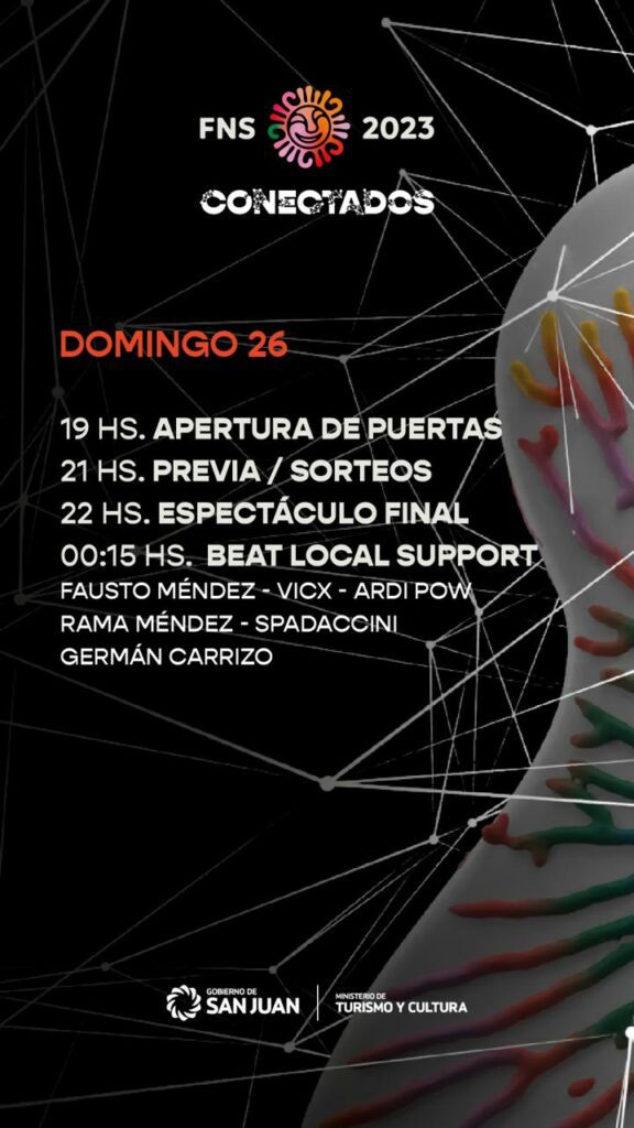 Desde el Ministerio de Turismo y Cultura de la Provincia dieron a conocer como se desarrollará el último día de la Fiesta Nacional del Sol en el Predio Costanera, Chimbas. Las puertas del predio abriran a las 19:00hs.