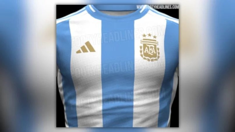 «La camiseta Adidas Argentina 2024 presenta las tradicionales franjas blancas y celestes del país, combinadas con logotipos dorados, aplicaciones y una fuente dorada», cita la información publicada en Footy.
