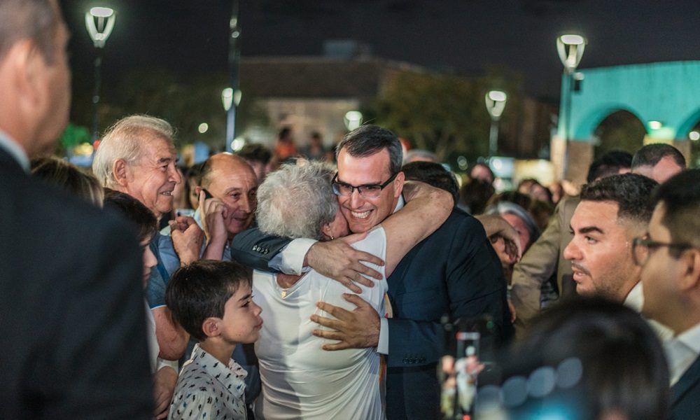 Primero juraron los concejales electos y luego, caminando desde el edificio municipal hasta el centro de la plaza, llegó Carlos Munisaga que tuvo que hacerlo muy despacio ya que la cantidad de gente que quería abrazarlo y sacarse fotos con él demoró las cosas. Por primera vez, además, el acto de asunción en Rawson contó con la presencia de un pastor evangélico que bendijo el nuevo mandato.