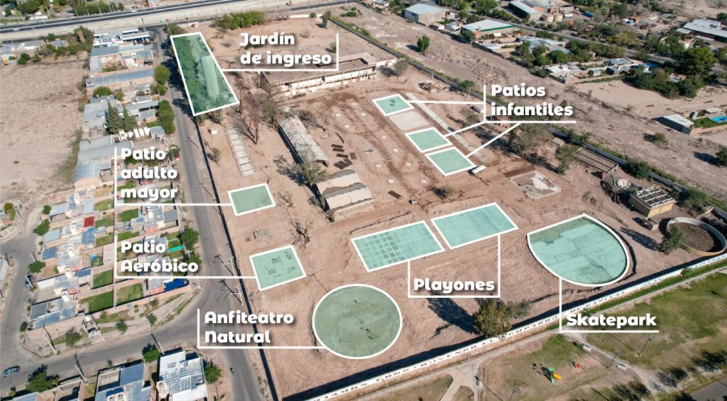 Con la superficie de 54.000 m² limpia, comenzaron en septiembre pasado las tareas de movimiento de suelo y las demoliciones programadas de rampas y ex caldera del matadero. En esos espacios se comienzan a ver los patios destinados a Adulto Mayor, Aeróbicos, patios infantiles, el skatepark, los playones deportivos y el módulo sanitario. Además está tomando forma el anfiteatro natural.
