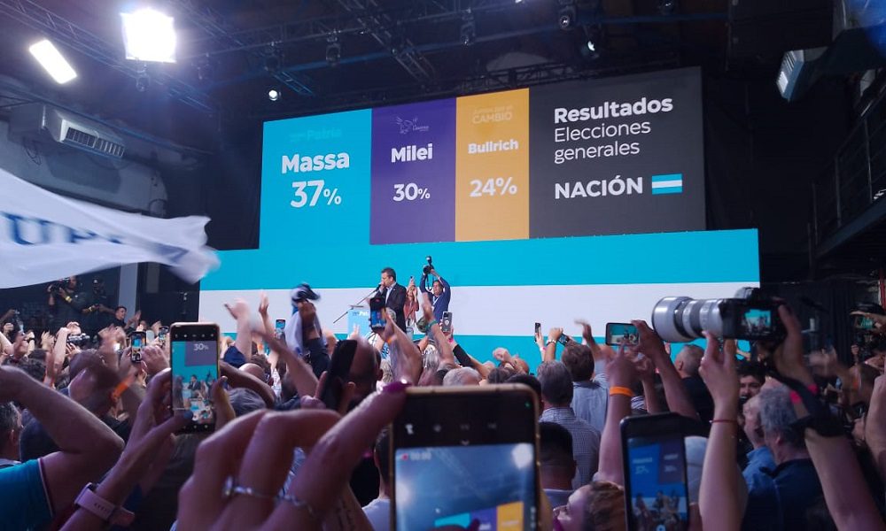 Escrutado el 98,37% de las mesas, Milei lograba un apoyo en las urnas de 29,99 puntos, casi similar a lo que ya había conseguido en las primarias abiertas simultáneas y obligatorias de agosto último, pero Massa mostraba una notable recuperación, de unos 9 puntos porcentuales, con respecto al 27,7% obtenido en las PASO por su fórmula más la que encabezaba Juan Grabois.