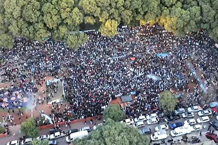 Frente al megaoperativo de Seguridad que el Gobierno montó en San José 1111, la concentración pasó a realizarse en el auditorio del parque. CFK reapareció a través de un audio en el que criticó a Patricia Bullrich y las políticas de Javier Milei.