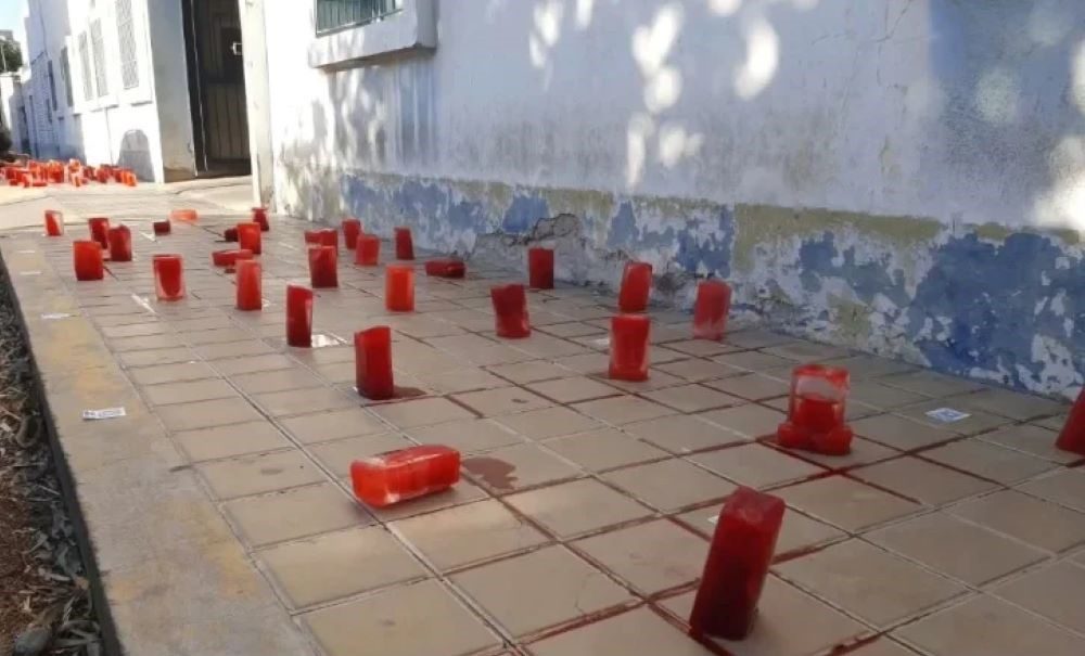 Este martes 31 de octubre a primera hora de la jornada, la vereda del departamento de Hidráulica de San Juan amaneció cubierto de una importante cantidad de «bloques de sangre» acompañados de un duro mensaje contra el organismo a cargo de Guadalupe López. Junto a los llamativos cubos de hielo rojo, quienes llevaron adelante la protesta, dejaron pegados la imagen de un código QR el cual dirige a un pedido para la actualización del Código del Agua.