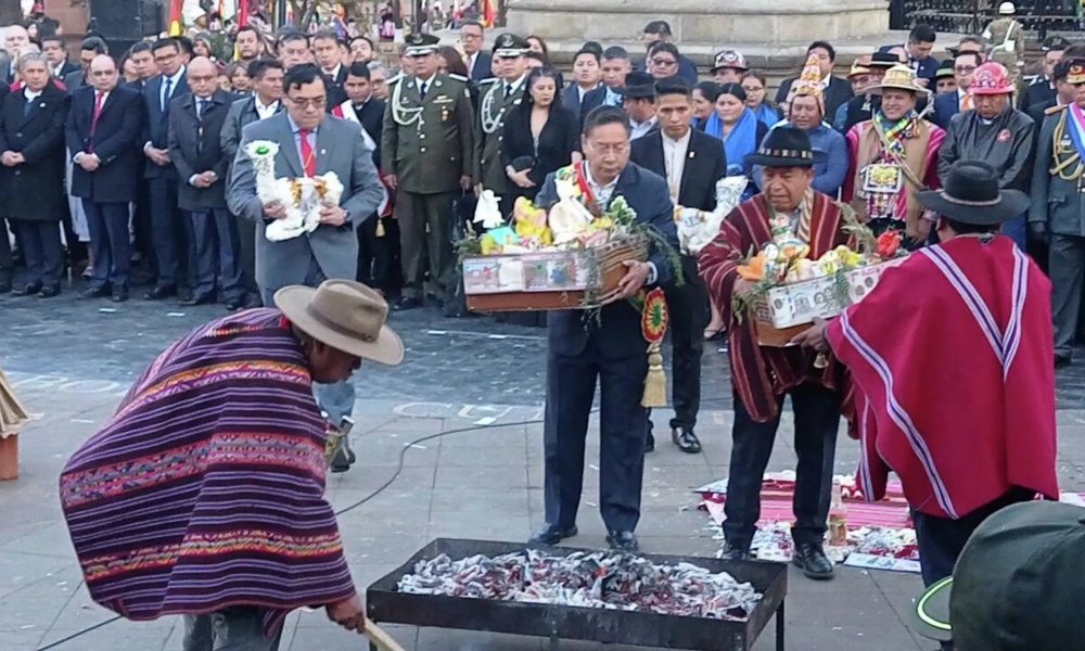 En las q’oas ardieron sullus (fetos de llama), palosanto y otros objetos indispensables para comunicarse con la pachamama. Arce y el vicepresidente boliviano, David Choquehuanca, estuvieron acompañados de todo el gabinete de ministros, policías, militares, trabajadores de empresas públicas, representantes de organizaciones sociales, autoridades gubernamentales y municipales de todo el país.
