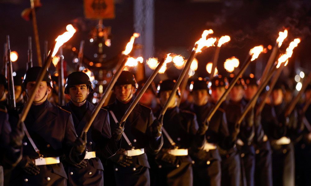 «Los uniformes, las antorchas ardientes, los colores, los cascos… 16 años en el poder. Pero la dictadura es El Salvador», escribió irónicamente el mandatario en su cuenta de Twitter.