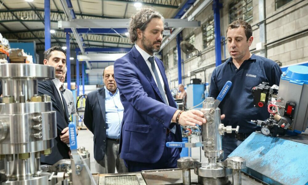 El canciller Santiago Cafiero destacó el papel que cumplieron las pymes en las exportaciones récord de este año, al recorrer la planta de la empresa metalmecánica Indave en Berazategui, provincia de Buenos Aires.
