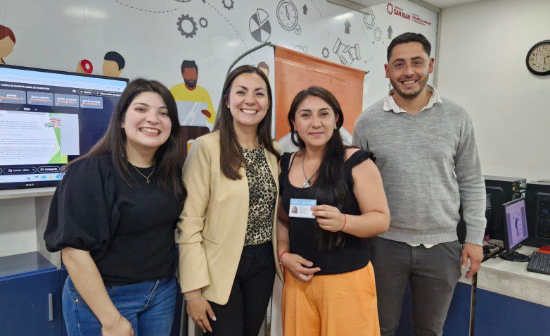Asistieron al acto de entrega de carnets a quienes asistieron y completaron el curso anteriormente, la directora de Economía Social, Cinthya Garrido, la directora de Juventudes, Tania Villavicencio y el subdirector, Yamil Ochi.