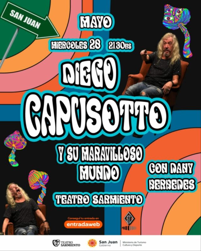 El próximo miércoles 28 de mayo a las 21:30 horas, el Teatro Sarmiento de San Juan (Avenida Leandro Alem 34 -Norte-) recibirá a Diego Capusotto en su aclamada biocomedia «Maravilloso Mundo», un espectáculo que ha revolucionado la escena nacional con su humor característico. La función contará con la participación especial del conductor y comediante Daniel Berbedés, en una noche que promete un recorrido por la trayectoria del reconocido humorista.