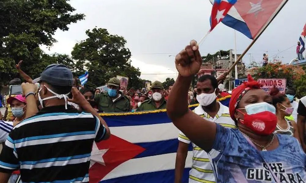 Hay una muy grande manipulación por las redes, se planifico una muy grande campaña de satanización contra el Gobierno cubano, muchas de las marchas, de hecho la gran mayoría son de personas que apoyan la Revolución, las han puesto en las redes como si fueran contra el Gobierno, han puesto muertos que no existen, luego han salido las propias personas a desmentir, hubo mucho vandalismo robando en tiendas, no comidas, sino artículos, si te fija en el aspecto de muchos, nada que ver con gente desesperada por falta de libertad…Hay un golpe mediático en marcha contra el pueblo cubano, están pidiendo invadir a Cuba, están incitando al odio, a matar a los revolucionarios, se han aprovechado de nuestras necesidades, de nuestras tensiones emocionales como seres humanos… Tenemos que arreglar muchas cosas internas en Cuba, pero el BLOQUEO yanqui es realmente CRUEL…