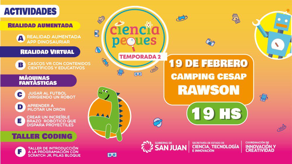 Ciencia Peques llega este domingo a Rawson, al Camping CESAP, desde las 19, los chicos, chicas y adolescentes que lleguen al lugar, podrán disfrutar de las actividades programadas.