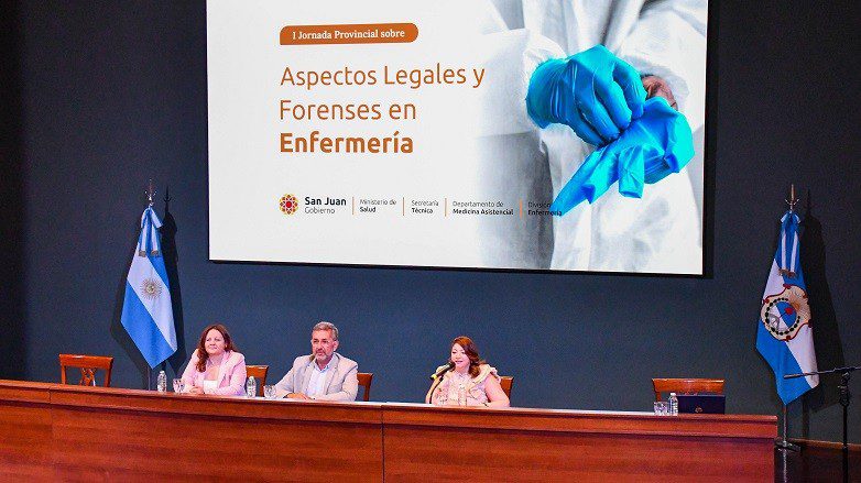 Comenzó la I Jornada Provincial sobre Aspectos Legales y Forenses en Enfermería, con la presencia del secretario de Planeamiento y Control de Gestión, Gastón Jofré, la jefa del Departamento de Medicina Asistencial, Romina Mataix y la jefa de División Enfermería, Marianela Pérez.