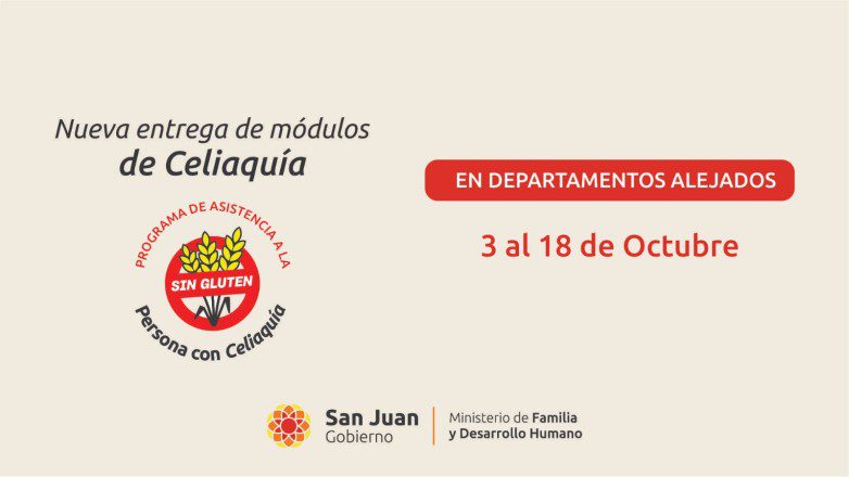 La Dirección de Emergencia y Políticas Alimentarias, dependiente del Ministerio de Familia y Desarrollo Humano, informa a la comunidad sobre un cambio de lugar en la entrega de módulos alimentarios para personas con celíacos. La entrega será del 3 al 18 de octubre. Cabe recordar, que la entrega será en el nuevo domicilio de calle Salta 1714 – norte, entre Sargento Cabral y Benavidez.