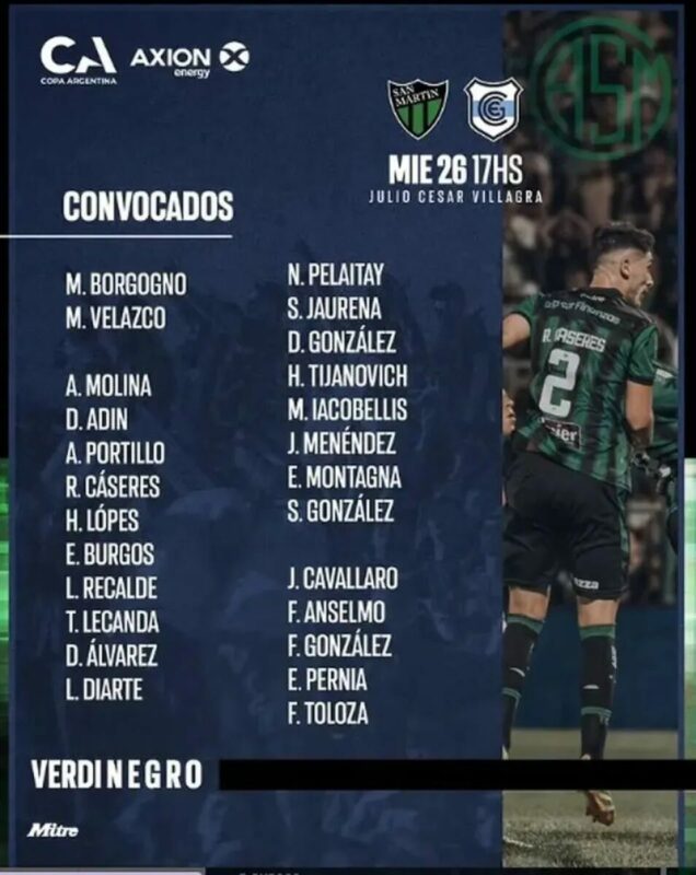 San Martín ya está en Córdoba para afrontar su primer desafío en la Copa Argentina 2025. Este miércoles, el Verdinegro se medirá ante Gimnasia y Esgrima de Jujuy en el Estadio Julio César Villagra, en lo que será el debut oficial de Leandro Romagnoli como entrenador, tras la salida de Raúl Antuña.