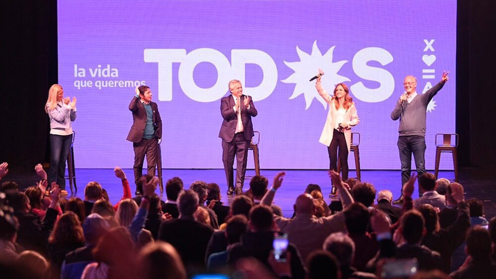 Durante el acto desde Mar del Plata, donde compartía el escenario con el mandatario, la primera precandidata a diputada Victoria Tolosa Paz aseguró que el FdT siente «la responsabilidad de lo hecho» y adelantó que «la reafirmación del rumbo va a ser contundente» porque los argentinos «no quieren mirar atrás«, al país de «la fuga, la especulación, los paraísos fiscales y el club de los mentirosos».