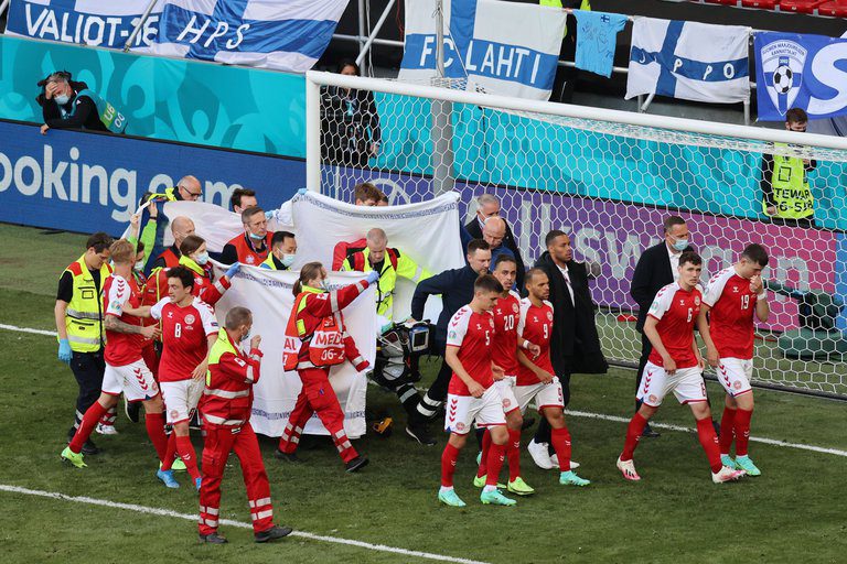 El futbolista Christian Eriksen se desplomó en pleno partido y perdió el conocimiento, lo que obligó a detener el juego y darle ingreso a los médicos para reanimarlo. Después de momentos de mucho dramatismo, la UEFA suspendió momentáneamente el encuentro y se supo que el jugador “está despierto y debe someterse a más exámenes”, según comunicó la Federación Danesa de Fútbol (DBU).