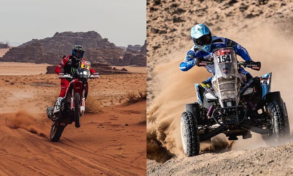 Los campeones argentinos Manuel Andújar y Kevin Benavides se clasificaron este lunes en el cuarto puesto de la división quads y el octavo lugar de las motos, tras disputarse la segunda etapa del Rally Dakar en una ruta de 598 kilómetros (430 cronometrados) entre el Sea Camp, a orillas del Mar Rojo, y la ciudad de Al-Ula, al oeste de Arabia Saudita.