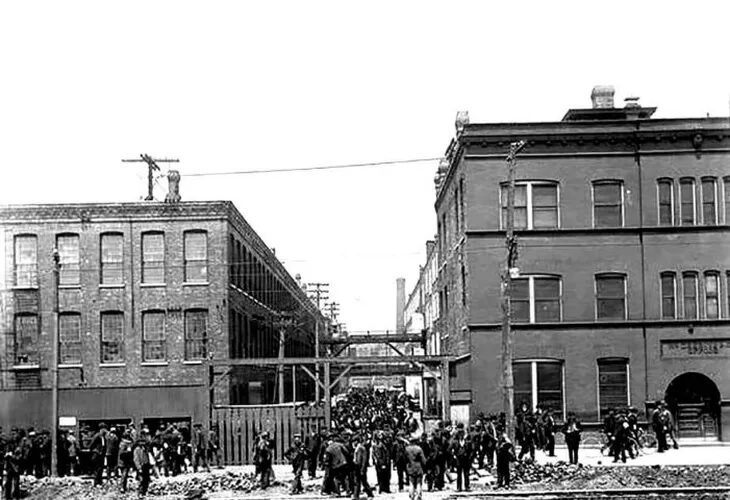 El 1 de mayo de 1886, 200 mil trabajadores iniciaron la huelga mientras que otros 200 mil obtenían esa conquista con la simple amenaza de paro. En Chicago, donde las condiciones de los trabajadores eran mucho peores que en otras ciudades, las movilizaciones siguieron los días 2 y 3, cuando tras una batalla campal una compañía de policías procedió a disparar a quemarropa sobre la gente, produciendo seis muertos y decenas de heridos.