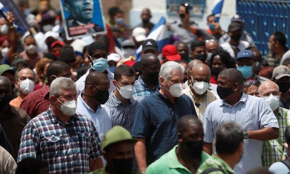 «Son acciones de desestabilización política históricas que tienen lugar contra Cuba y que se han intensificado particularmente durante la pandemia», dijo Díaz Canel luego de realizar una recorrida por San Antonio de los Baños, un pueblo próximo a La Habana y uno de los epicentros de las movilizaciones.