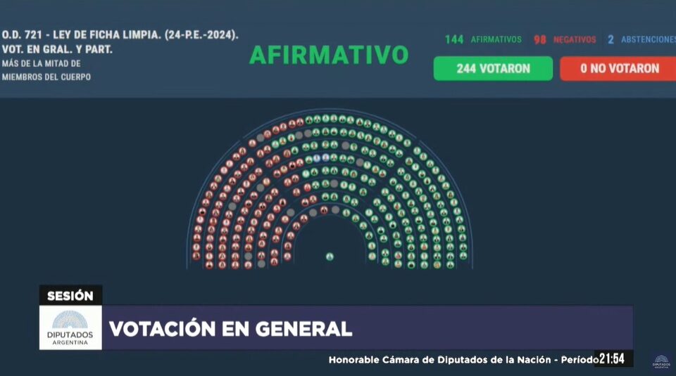 Por 144 votos afirmativos, 98 negativos y 2 abstenciones, la Cámara Baja aprobó y giró al Senado la iniciativa que busca impedir que funcionarios condenados a segunda instancia por corrupción puedan postularse a cargos electivos.