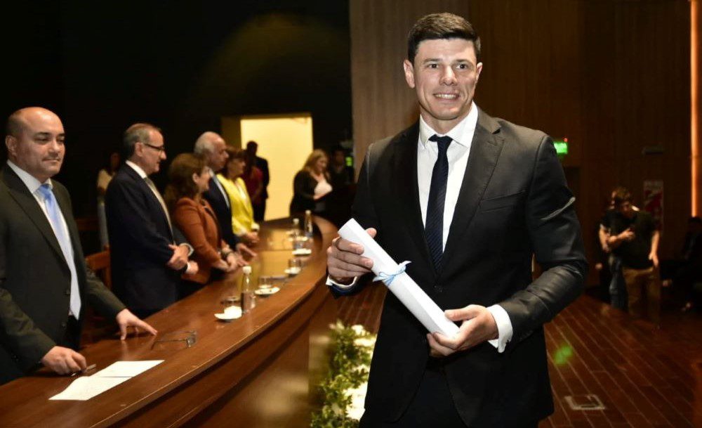 En este marco, el electo para el Parlasur, Matías Sotomayor de Unión por la Patria, subió al escenario para ser acreedor de su diploma.