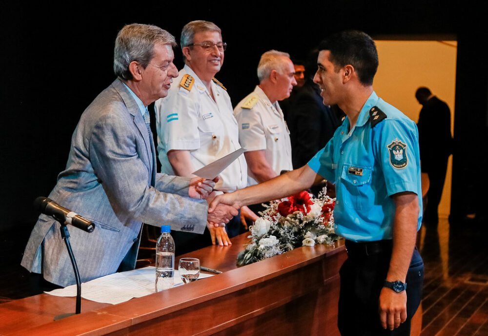 Continuando, el jefe de Policía aseguró que se siente dignificado por conducir la institución e hizo hincapié en el apoyo que el Estado provincial brindó a la fuerza a través de recursos materiales y capacitación para el perfeccionamiento de los agentes. “La seguridad pública se pone de manifiesto en el buen vivir del ciudadano”, expresó y concluyó agradeciendo al gobernador por el aporte a la institución provincial.