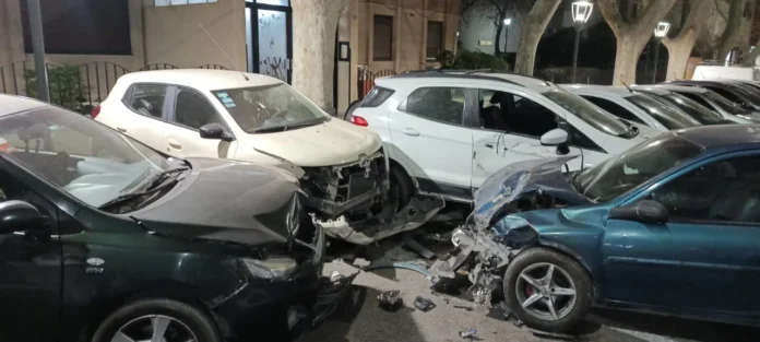 Fernando Suesa, de 37 años, conducía por Ignacio de la Roza de oeste a este y, apenas pasó la rotonda que está en la intersección de Alem, desvió bruscamente su trayectoria. En ese momento se cruzó de carril, impactando a 3 vehículos que estaban estacionados en la vereda norte, ocasionando que uno de ellos se incrustara en un cuarto rodado que estaba en el lugar.