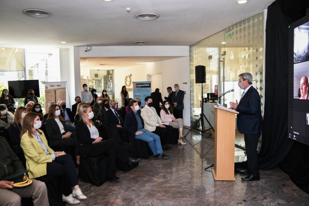 Acto seguido habló el director del AGP, Gastón Reino y dijo que “noventa años pasaron de hechos, acontecimientos guardados, en este archivo, desde el terremoto, un golpe de Estado, cambio de domicilio de la institución, entre otras cuestiones, y hoy estamos acá con 546 alumnos de la carrera Archivística, que no han podido estar todos de forma presencial por la pandemia. Con la ministra Fabiola Aubone, creamos una carrera que entendíamos que era necesario para el perfeccionamiento y profesionalización de la gestión documental”.