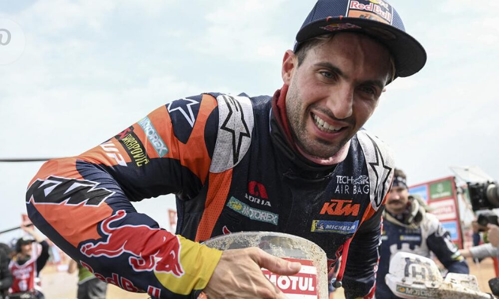 El piloto argentino Kevin Benavides, a bordo de su moto KTM del equipo Red Bull, se coronó este domingo campeón del Rally Dakar en Arabia Saudita por segunda vez, tras imponerse en la 14ta. y última etapa de 417 kilómetros (136 de especial) entre Al-Hofuf y Dammam.