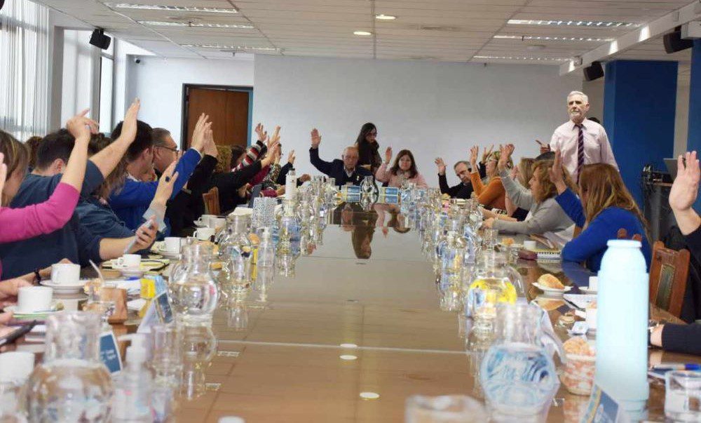 Con las manos en alto, el cuerpo aprobó la iniciativa y saludó con fuertes aplausos la creación de la nueva carrera.