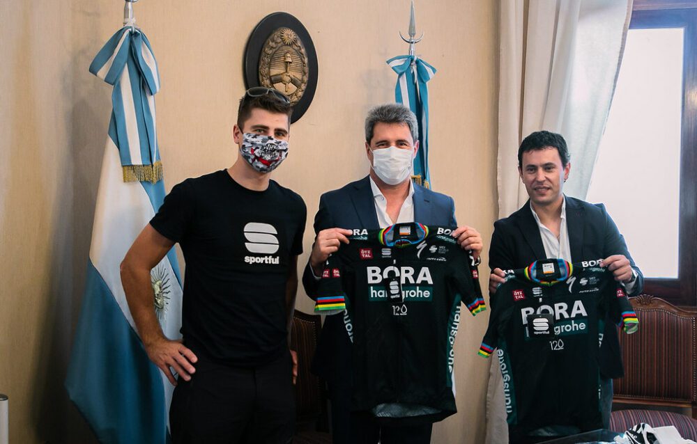 Tras el encuentro, el ciclista eslovaco afirmó: «Me reuní con el gobernador para dejarle un afectuoso cariño a todos los sanjuaninos que siempre me reciben muy bien».