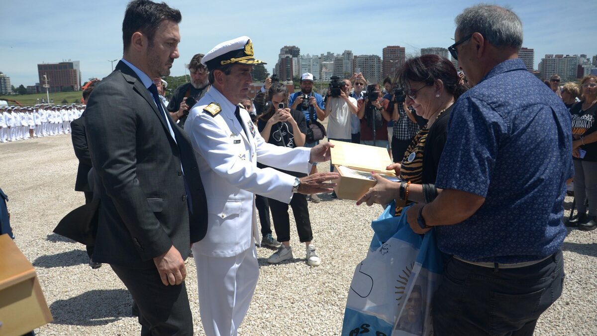 El homenaje tuvo lugar en la Escollera Norte, frente al Museo de la Fuerza de Submarinos, donde hay placas en memoria del ARA San Juan. El cofre que entre Petri a los familiares tenía una carta con la frase “el recuerdo de los héroes y heroína del submarino ARA San Juan permanecerá indeleble en la memoria de toda la Nación”.