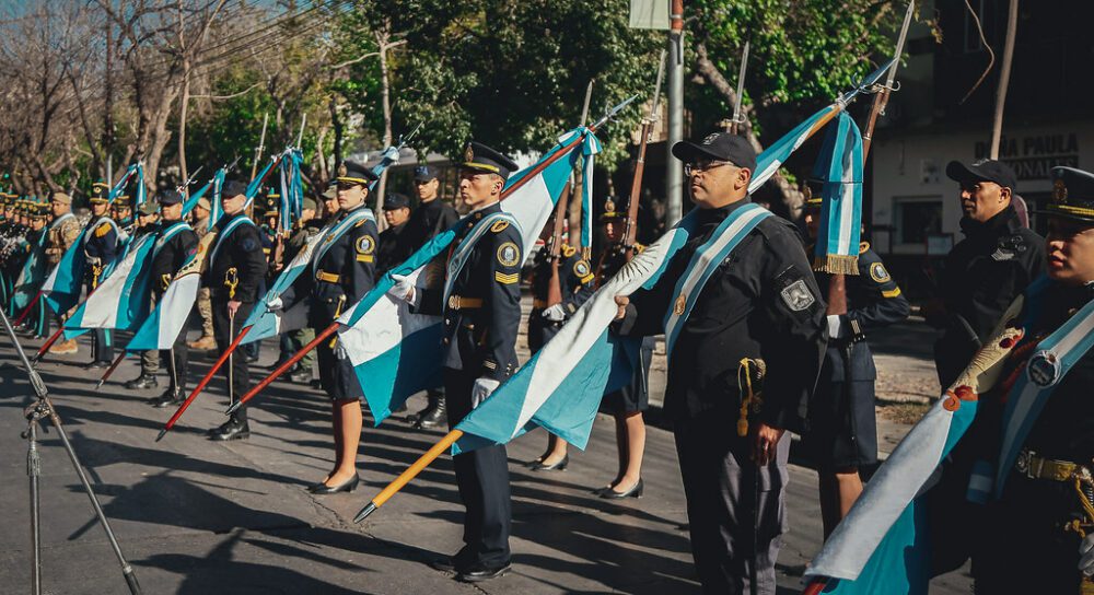 Para iniciar las actividades, los presentes entonaron las estrofas del Himno Nacional Argentino y el Himno a Sarmiento, interpretadas por la banda de Música de la provincia de San Juan.