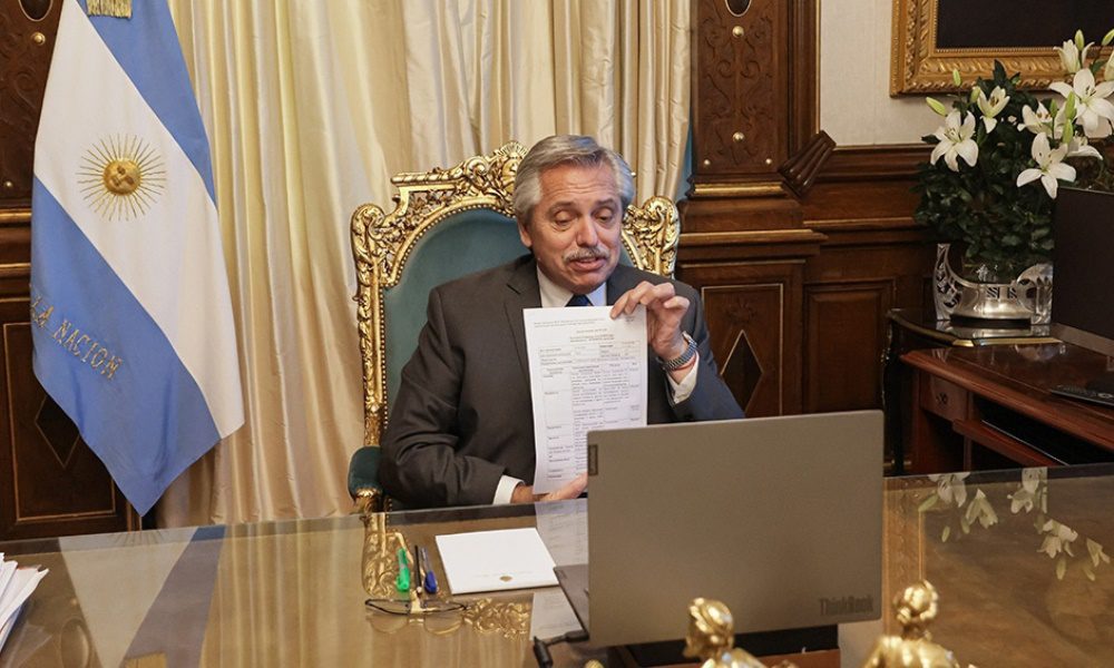 El Presidente también señaló que hoy es “un día triste porque hemos pasado el número de 100 mil fallecidos lamentablemente” y consideró que “el mejor homenaje que podemos rendirles es cuidar a los que están y una forma es poder seguir haciendo la vacuna en la Argentina”.