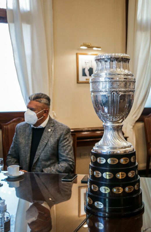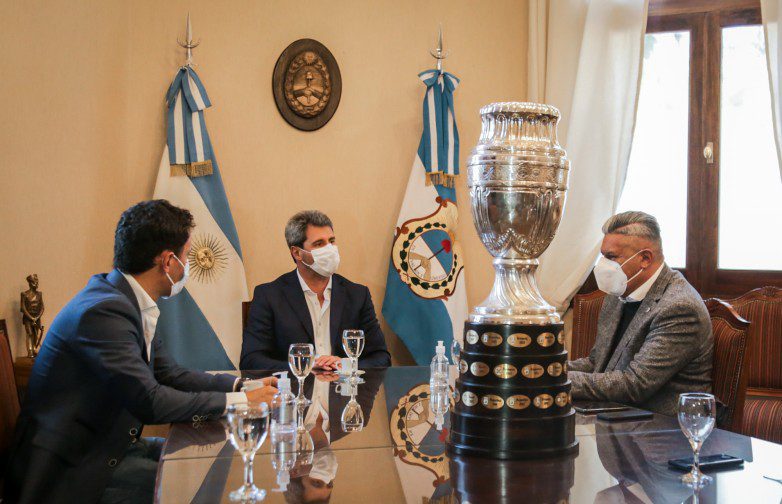 «El Chiqui» Tapia se reunió en casa de gobierno con el gobernador Sergio Uñac y el secretario de deportes Jorge Chica, para mostrarles la copa original obtenida en el torneo donde triunfamos ante los brasileros hace dos meses. Uñac se manifestó feliz y agradecido al tener el trofeo máximo a nivel selecciones del continente en su despacho. Mientras que Tapia señaló: «Traje la Copa a San Juan porque esta es mi tierra y la Provincia también es parte de este logro«. Además, agregó que vino a dar las gracias a la Difunta Correa por el logro realizado después de 28 años y, de paso, visitar a su familia.