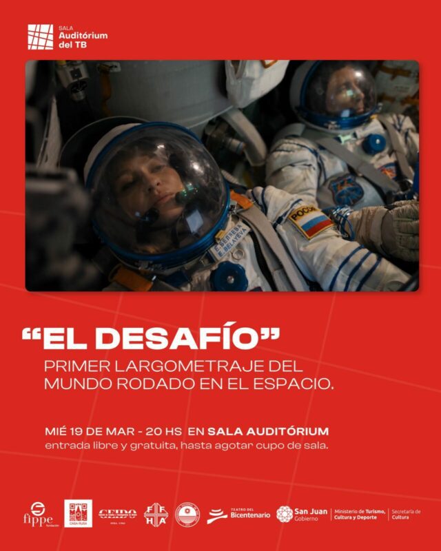 Además, los sanjuaninos podrán disfrutar de la película “El Desafío” (2023), el primer largometraje en el mundo rodado en el espacio. La película narra la historia de una cirujana llamada Zhenya que viaja al espacio para realizar una cirugía cardiaca en gravedad cero luego de que el cosmonauta Oleg Ivanov drásticamente pierda el conocimiento a bordo de la Estación Espacial Internacional.