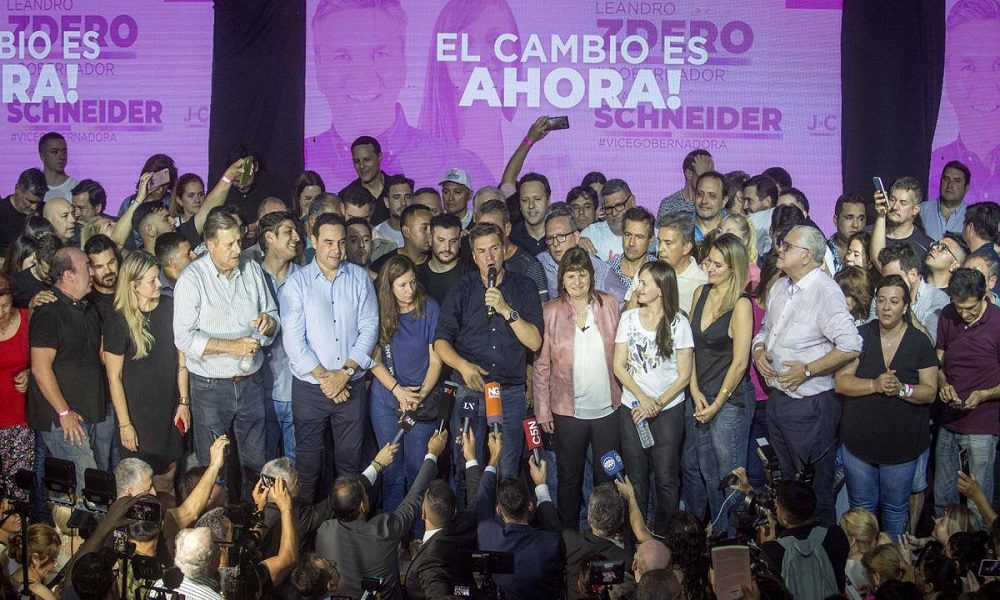 Minutos después, Zdero se proclamó ganador desde el escenario de su búnker, acompañado por la candidata presidencial de Juntos por el Cambio, Patricia Bullrich.