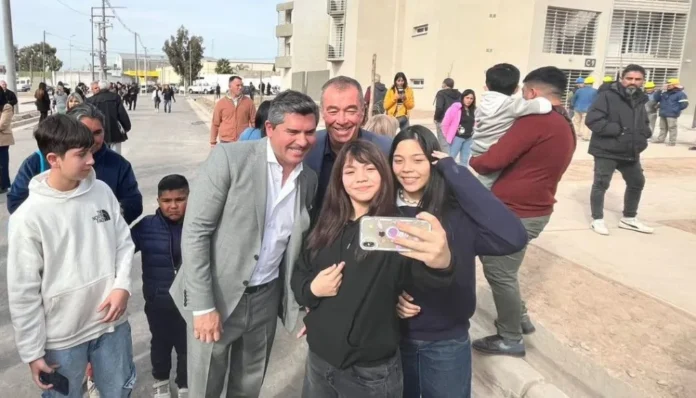 Los máximos referentes de la alianza oficialista dejaron datos significativos en la jornada de ayer. Primero, lo dicho, el pedido del voto. Segundo, el hecho de que compartieran actividades, dos actividades oficiales. Una en la mañana, en la entrega de viviendas del Barrio Los Nogales, en Capital, y, la segunda, en Rivadavia.
